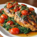 Cooking Balsamic Chicken Breast with Spinach and Tomatoes is more than just preparing a meal; it’s about creating a moment of joy in your busy life. The vibrant colors and delightful aromas fill your kitchen, making it feel like a warm embrace. Each bite is a celebration of flavors that brings your family together around the table. Whether it’s a weeknight dinner or a special occasion, this dish is sure to impress. I hope you find as much happiness in making it as I do. Enjoy the deliciousness and the memories you’ll create along the way!