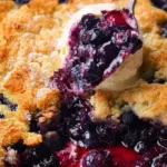 A heartwarming blueberry cobbler with a golden crust and juicy fruit filling that evokes sweet summer nostalgia.