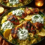 A comforting and flavorful dish with tender chicken, fluffy rice, and creamy tzatziki, perfect for weeknight dinners.