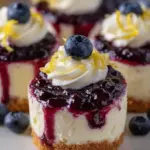 Delightful mini cheesecakes packed with zesty lemon and juicy blueberries, perfect for a guilt-free sweet treat.