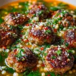 A heartwarming Italian soup featuring tender meatballs, vibrant greens, and small pasta in a flavorful broth, perfect for family gatherings.