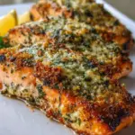 Coat the fillets: Press the Parmesan and basil mixture generously onto the top of each salmon fillet, ensuring even coverage for that delightful crunch.