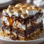 Delicious S'mores Lasagna dessert with layers of chocolate and marshmallows