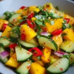 Colorful Thai Mango Cucumber Salad with fresh herbs and seasoning